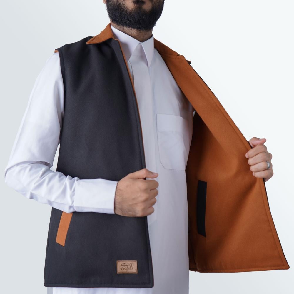 سديري جوخ دبل فيس من الرواسي الرسمي - alrawassi لإطلالة أنيقة وفاخرة فهو الاختيار المثالي لك لأن تصميم مميز قابل للارتداء من الجهتين بجودة عالية ودفء رائع.