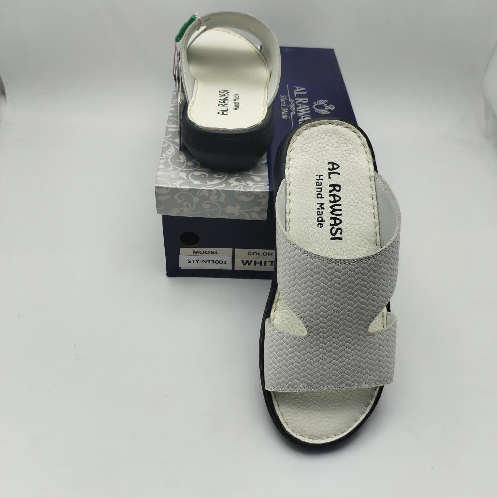شبشب رجالي أبيض من الرواسي مصنوع يدويًا من مواد عالية الجودة توفر الراحة والدعم لقدميك طوال اليوم. يتميز الشبشب بسطح داخلي مبطن يمنحك إحساسًا بالراحة مع كل خطوة تخطوها. احصل عليه الآن من متجر الرواسي الرسمي - alrawassi